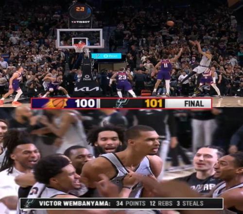 先说下,文班亚马过去一段时间的表现也不差,上一期是他生涯第一次排在MVP榜第二位,且就在榜单公布的同一天,文班亚马刚刚带领马刺击败太阳、投进绝杀并且锁定季后赛。