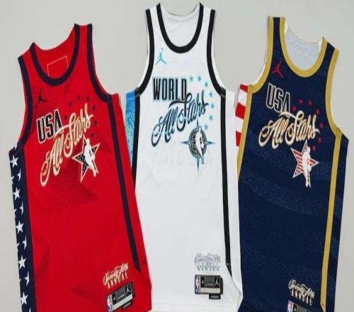 北京时间2月3日,2026年NBA全明星赛的美国队球衣和世界队球衣揭晓(如下图)。三款球衣各具特色:美国队两款分别为印着星星图案的红色球衣、印着条纹图案的蓝色球衣,世界队则是一件